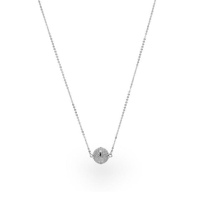 Damenkette mit funkelnder Magnetkugel Silber 42 cm
