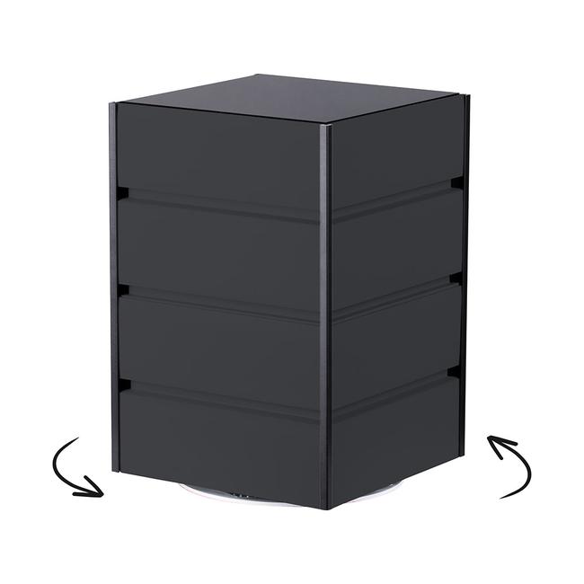 Dieser 4-seitige Lamellenwand-Tischtower verwandelt Ihre Ladentheke in eine stilvolle Präsentationsfläche, die Ihren Produkten die Aufmerksamkeit der Kunden sichert. Das eingebaute Drehelement inklusive Kratzschutz eröffnet eine Rundum-Ansicht, die Ihre Artikel aus jedem Blickwinkel optimal zur Geltung bringt. Die Farbauswahl der Lamellenwandprofile ermöglicht eine harmonische Integration in Ihr Shopkonzept.