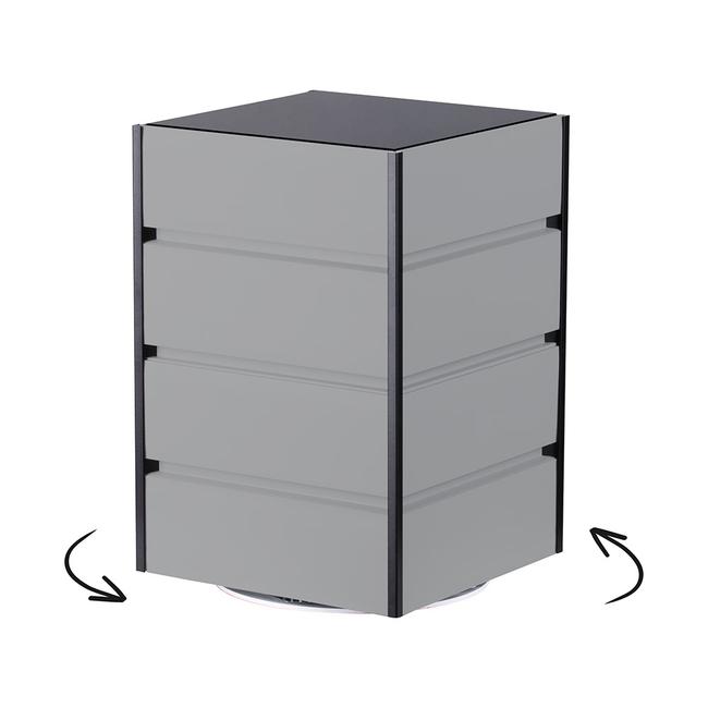 Dieser 4-seitige Lamellenwand-Tischtower verwandelt Ihre Ladentheke in eine stilvolle Präsentationsfläche, die Ihren Produkten die Aufmerksamkeit der Kunden sichert. Das eingebaute Drehelement inklusive Kratzschutz eröffnet eine Rundum-Ansicht, die Ihre Artikel aus jedem Blickwinkel optimal zur Geltung bringt. Die Farbauswahl der Lamellenwandprofile ermöglicht eine harmonische Integration in Ihr Shopkonzept.