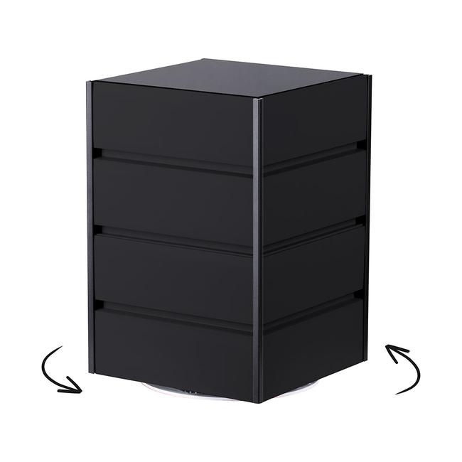 Dieser 4-seitige Lamellenwand-Tischtower verwandelt Ihre Ladentheke in eine stilvolle Präsentationsfläche, die Ihren Produkten die Aufmerksamkeit der Kunden sichert. Das eingebaute Drehelement inklusive Kratzschutz eröffnet eine Rundum-Ansicht, die Ihre Artikel aus jedem Blickwinkel optimal zur Geltung bringt. Die Farbauswahl der Lamellenwandprofile ermöglicht eine harmonische Integration in Ihr Shopkonzept.