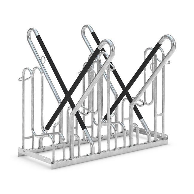 Der Fahrradständer mit dem Plus an Sicherheit und Komfort. Die Fahrräder werden durch die kunststoffummantelten Anlehnbügel hochwertig geschützt und nicht zerkratzt. Besonders sicher wird das An- und Abschließen durch die integrierten Stahl-Rundösen - so ist Ihr Fahrrad perfekt gegen Diebstahl geschützt. Ebenso einfach ist das Einparken, durch die extra breiten Reifenabständen. Bodenmontagewinkel sind enthalten