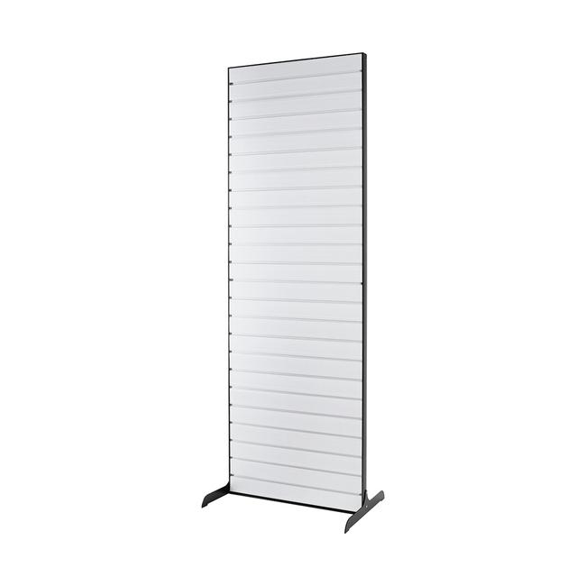 Dieses einseitige Lamellenwand-Display überzeugt durch modernes Design. Es eignet sich in Verbindung mit unserem umfangreichen Lamellenwand Zubehör-Sortiment optimal zur Präsentation Ihrer Produkte oder Waren. Hierdurch entstehen vielfältige Gestaltungsmöglichkeiten. Durch die Kunststoff-FlexiSlot®-Profile in der Farbe Ihrer Wahl (gemäß angegebener Auswahl) entsteht eine ideale Anpassungsmöglichkeit an Ihr Unternehmens-Design. Der filigrane, schwarz pulverbeschichtete Aluminium-Rahmen rundet die hochwertige Optik ab. Die seitlich anschraubbaren Stahlfüße geben dem Display die notwendige Standfestigkeit.