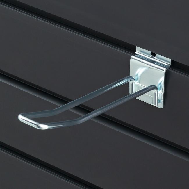 Unser Lamellenwand-Doppelhaken ist ein praktisches Zubehör für Ihre Lamellenwand. Mit einer einfachen Handhabung durch das Einstecken in die Lamellenwand ermöglicht er Ihnen eine individuelle Erweiterung Ihres Displays. Der Doppelhaken ist aus robustem und langlebigem Material. Mit einer Drahtstärke von 4,8 mm ist er sehr stabil. Sie können zwischen unterschiedlichen Längen wählen, um ihn optimal an Ihre individuellen Bedürfnisse anzupassen.