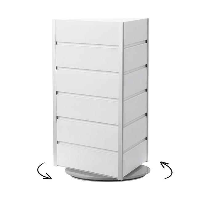 Dieser Lamellenwand-Tischtower macht Ihre Ladentheke zu einem visuellen Highlight und zieht durch den dreiseitigen Aufbau gezielt Blicke an. Mit einem Drehelement inklusive Kratzschutz ausgestattet, gewährleistet er eine mühelose und langlebige Nutzung. Dank der vielfältigen Farbgebungsmöglichkeiten der Lamellenwandprofile lässt sich der Tischaufsteller in jede bestehende Shopeinrichtung integrieren.