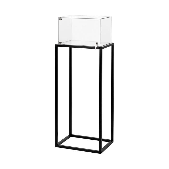 Die Bestandteile dieses Displays werden im montierten Zustand geliefert, sodass zum Einsatz lediglich die Vitrine mit einer Zwischenplatte auf das Gestell aufgesetzt wird.