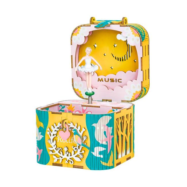 Mechanisches Musikinstrument - Nachdem das 3D-Puzzle fertiggestellt ist hört der Spaß auf keinen Fall auf. Durch seine mechanische Zusatzfunktion, rotiert die elegante Ballerina um ihre eigene Achse und verzaubert den Betrachter mit ihren Pirouetten. Begleitet wird die Ballerina durch eine entspannende Melodie (Greensleeves/Mozart), welche beim Öffnen der Spieluhr in Dauerschleife ertönt.