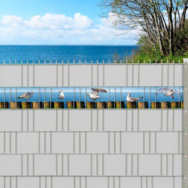 Verleihen Sie Ihrem Garten eine besondere Note mit unseren kreativen Sichtschutzstreifen aus Weich-PVC. Diese dekorativen Streifen setzen lebendige Akzente an Ihrem Zaun und schaffen ein einladendes Ambiente. Ob Sie das friedliche Motiv von Möwen, das farbenfrohe Tulpenbild, das verspielte Hundedesign oder das charmante Katzendesign bevorzugen – bei uns finden Sie das passende Design für Ihren Garten.