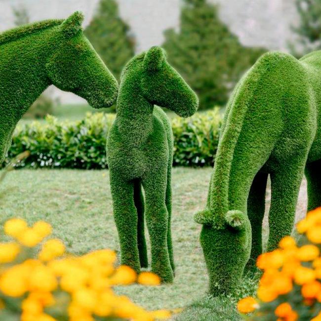 Mit unseren formgeschnittenen Figuren setzen Sie mit wenig Aufwand einen stilvollen Hingucker in Ihren Garten. Alle unsere Kunsttiere werden aus einem stabilen Fiberglas-Rahmen hergestellt und mit einem UV-stabilisiertem Kunstrasen ummantelt, welches den DIN 53387 Standard (6000 Stunden) gewährleistet. Sollte es zur einer Verschmutzung der Figur kommen, empfehlen wir eine sanfte Reinigung mit Wasser.