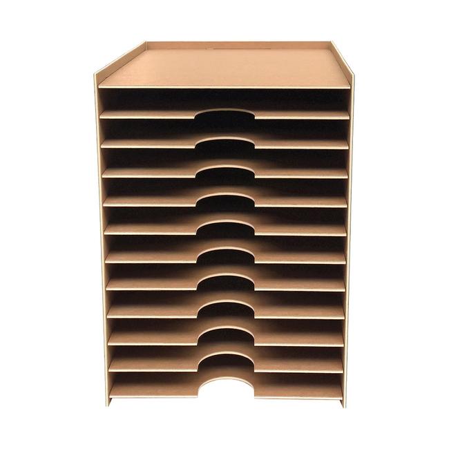 Mit der stabilen Papierablage bringen Sie Ordnung in Ihre kreative Welt.Ob Bastelmaterialien, Papierwaren oder wichtige Unterlagen – diese praktische Ablage hilft Ihnen, den Überblick zu behalten. Die Anzahl der 12 Ablageflächen machen sie zum perfekten Helfer im Büro, Atelier oder Kinderzimmer. Sie eignet sich sowohl für den privaten Gebrauch als auch für den gewerblichen Einsatz beispielweise als Dokumentenablage.