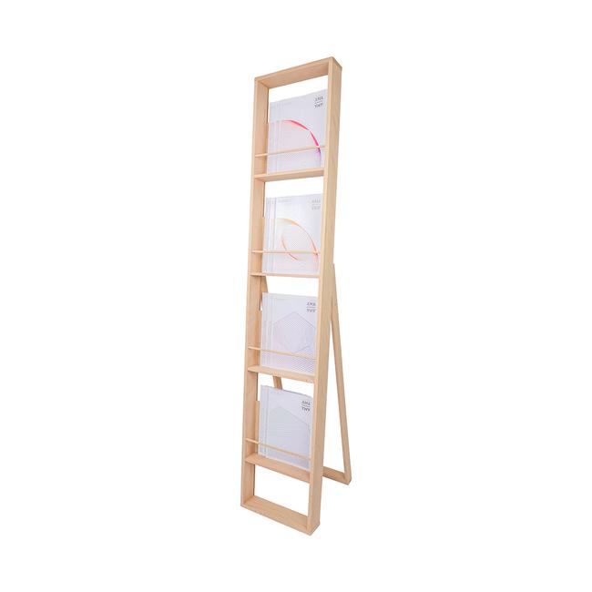Vier großzügige, geneigte Fächer bieten viel Platz für Flyer, Prospekte, Kataloge und Zeitschriften. Die Neigung der Fächer sorgt für eine optimale Sichtbarkeit der Druckmedien und erleichtert die Entnahme für Ihre Kunden.