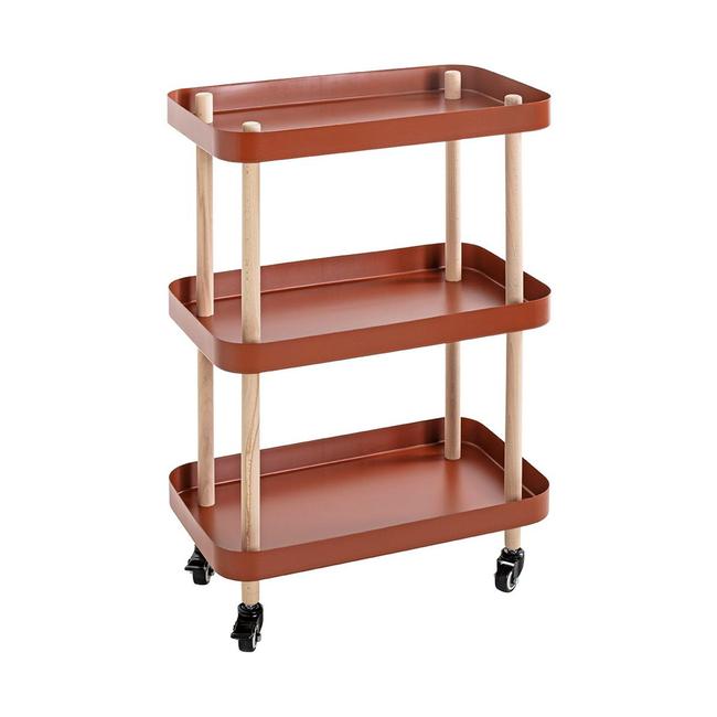 Mit seinen drei stabilen Ebenen bietet er ausreichend Platz für Küchenutensilien, Vorräte oder Dekorationsobjekte. Gleichzeitig eignet er sich hervorragend zur übersichtlichen Aufbewahrung von Bastelmaterialien wie Farben, Werkzeugen oder kleinen Zubehörteilen. Dank der erhöhten Ablagenkanten bleiben auch kleinere Gegenstände sicher an ihrem Platz.