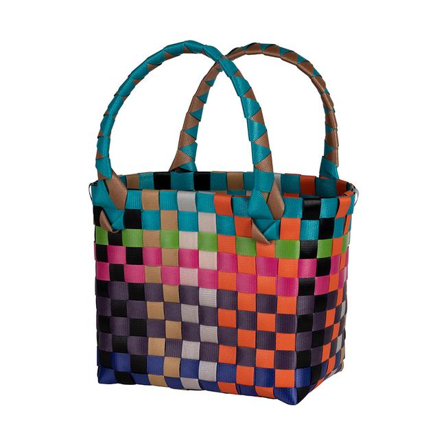 Die bunt gemischten Kunststoffstreifen sind so verflochten, dass ein stabiler Shopper mit hoher Qualität entsteht und dazu noch stylisch aussieht.