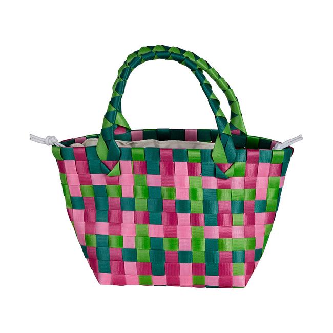 Die bunt gemischten Kunststoffstreifen sind so verflochten, dass ein stabiler Shopper mit hoher Qualität entsteht und dazu noch stylisch aussieht.
