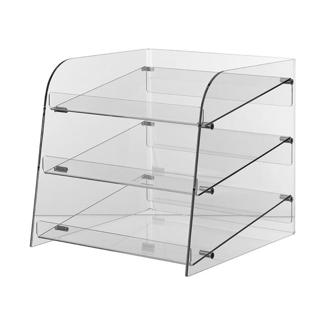 Das Thekendisplay „Ledum” präsentiert Ihre Waren im glasklaren Acrylregal. Die drei Ablagen aus 3 mm Acrylglas sind schräg und helfen beim automatischen Nachrutschen. Sie können die Ablagen drehen und dabei zwischen zwei verschiedenen Fronthöhen wählen.