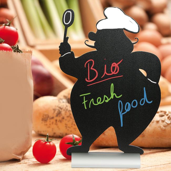 Die beschreibbaren Tafeln sind ideal für Gastro-Tische, Buffets oder Marktstände! Die Tisch-Kreidetafeln in verschiedenen Sonderkonturen lassen sich immerwieder abwischen und so können Sie die Tischtafeln auf Wunsch täglich neu beschreiben.