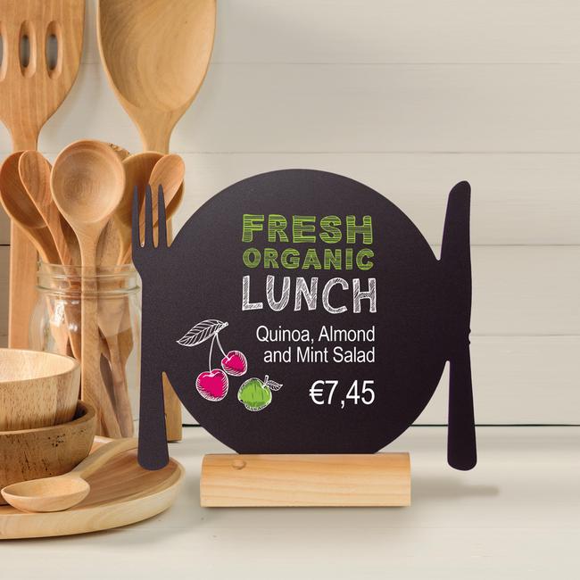 Die Kreidetafeln sind ideal zum Aufstellen auf Tischen, an Buffets oder Martkständen!