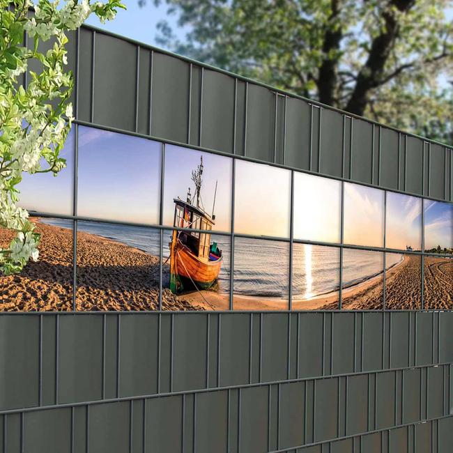 Die Sichtschutzstreifen lassen sich einfach und schnell in Ihren Doppelstabmattenzaun einflechten. Die mitgelieferten Klemmleisten sorgen für einen stabilen und sicheren Halt. Sie erhalten 2 doppelseitig bedruckte Zaunstreifen und 4 Klemmleisten, sodass die Montage mühelos gelingt und Ihr Garten im Handumdrehen ein gemütliches Ambiente erhält. Die tollen Motive schaffen sofort eine gemütliche Atmosphäre und bieten gleichzeitig 100% Blickschutz.